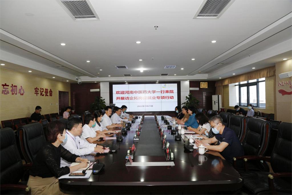 本网讯(文/程丽娟 图/李新宇)为持续贯彻落实教育部办公厅、省教育厅“稳就业、保就业”决策部署,扎实推进书记校长访企拓岗促就业专项行动,全力促进毕业生高质量充分就业,2022年7月21日上午,校党委委员、副校长田力带队赴河南省儿童医院走访调研,精准对接医院人才需求,主动搭建校院合作桥梁。招生就业处副处长王晓蕊,学生处副处长许学海,第一临床医学院(中西医结合学院)党委副书记张婉红,护理学院党委副书记马慧玲、副院长刘玲霞等有关人员参加此次专项行动。