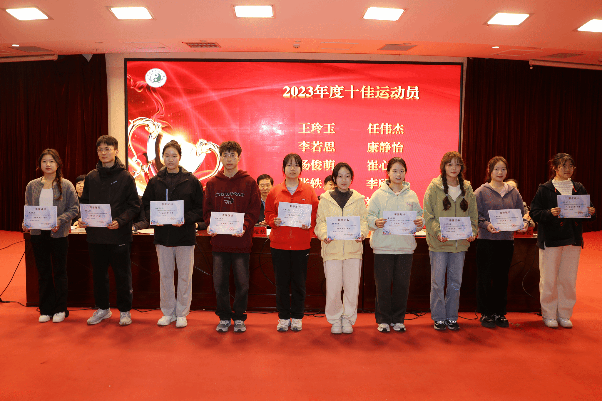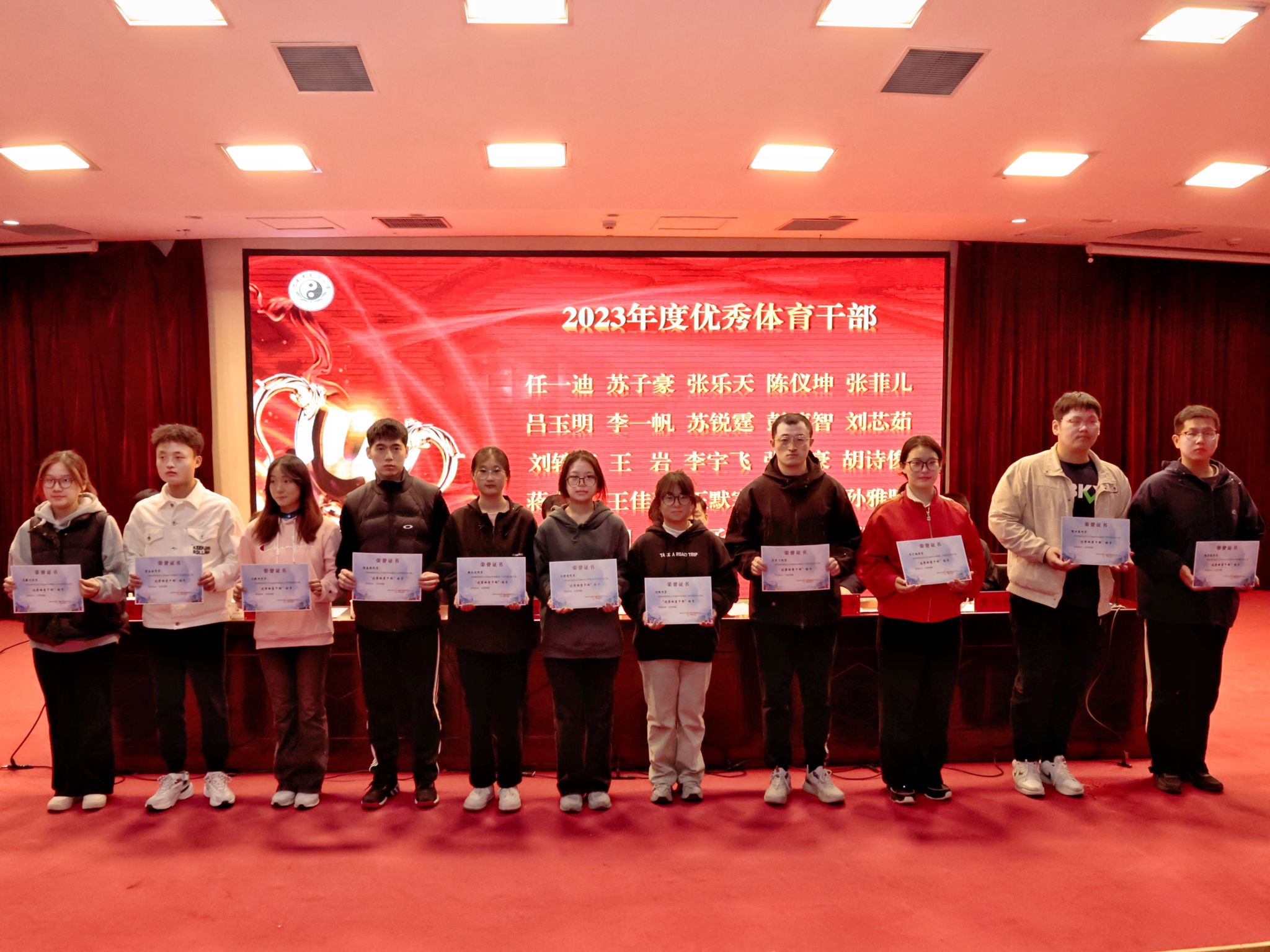 会上,彭新通报了2023年体育工作开展情况,部署了2024年学校体育工作要点。参会嘉宾宣布了2023年校内外体育竞赛获奖情况,并为先进单位、十佳运动员和优秀体育干部颁奖。