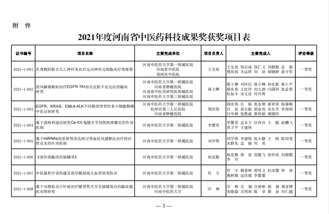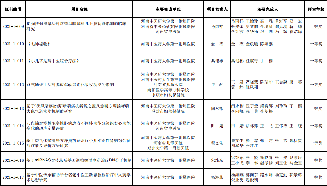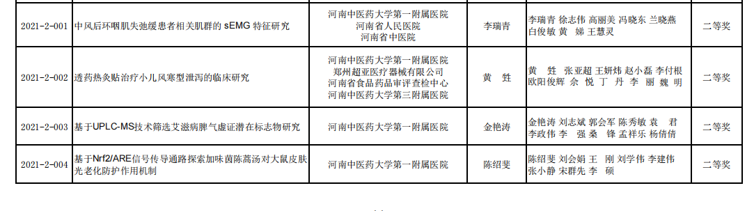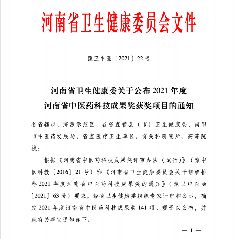 本次河南省中医药科技成果奖所取得的优异成绩,是对医院科研人员在中医药研究领域所做工作的认可和鼓舞,也是医院科研实力不断提高和增强的成果表现,谨向荣获2021年度河南省中医药科技成果奖的各主要负责人及团队表示祝贺。
