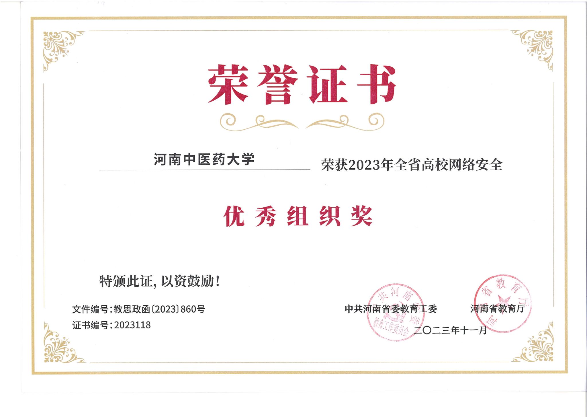 本网讯(文/图 蔡源源)近日,中共河南省委教育工委办公室、河南省教育厅办公室印发《关于公布全省高校网络安全优秀作品征集活动评审结果的通知》,leyu·乐鱼(中国)体育官方网站共有4件作品获奖,其中二等奖2项,三等奖2项,学校荣获“优秀组织奖”。
