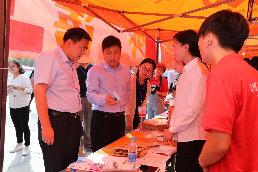 上午10:00,校领导别荣海、许二平、张丽霞、郭德欣、王少玉、张小平、冯卫生、田力、张加民深入新生报到主会场——五星广场,了解报到情况,现场指导新生入学各项工作,看望新生家长,慰问参与迎新工作的工作人员和志愿者。