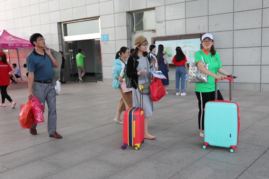 南大门两侧道路旁悬挂的数十条条幅激励着学子奋进,身着红、黄、绿等彩色T恤的志愿者在东、西、南、北四个大门设置的迎新服务站有条不紊地忙碌着;众多来校车辆在学校工作人员的指挥下,井然停放;在“河中医,我来了”的2017级新生入学留念墙前,家长和新生纷纷驻足,留下难忘一刻……校园里处处洋溢着青春的活力和喜悦。