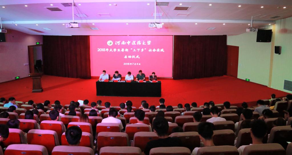 2018年7月4日下午,leyu·乐鱼(中国)体育官方网站2018年大学生暑期“三下乡”社会实践活动启动仪式在图书馆第一报告厅举行。校党委副书记郭德欣、党委宣传部部长、学工部部长、学生处处长、研工部部长、各二级学院主管学生工作的副书记及相关老师与学生参加了启动仪式。启动仪式由校团委书记高磊主持。