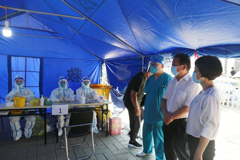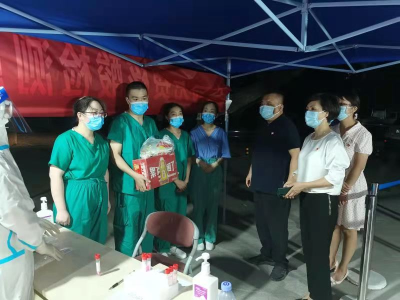 当天,孟林、乔东鸽还带领党委办公室、工会办公室的工作人员看望慰问了南五里堡社区、蓉湾社区等11个核酸检测采样点的一线职工。