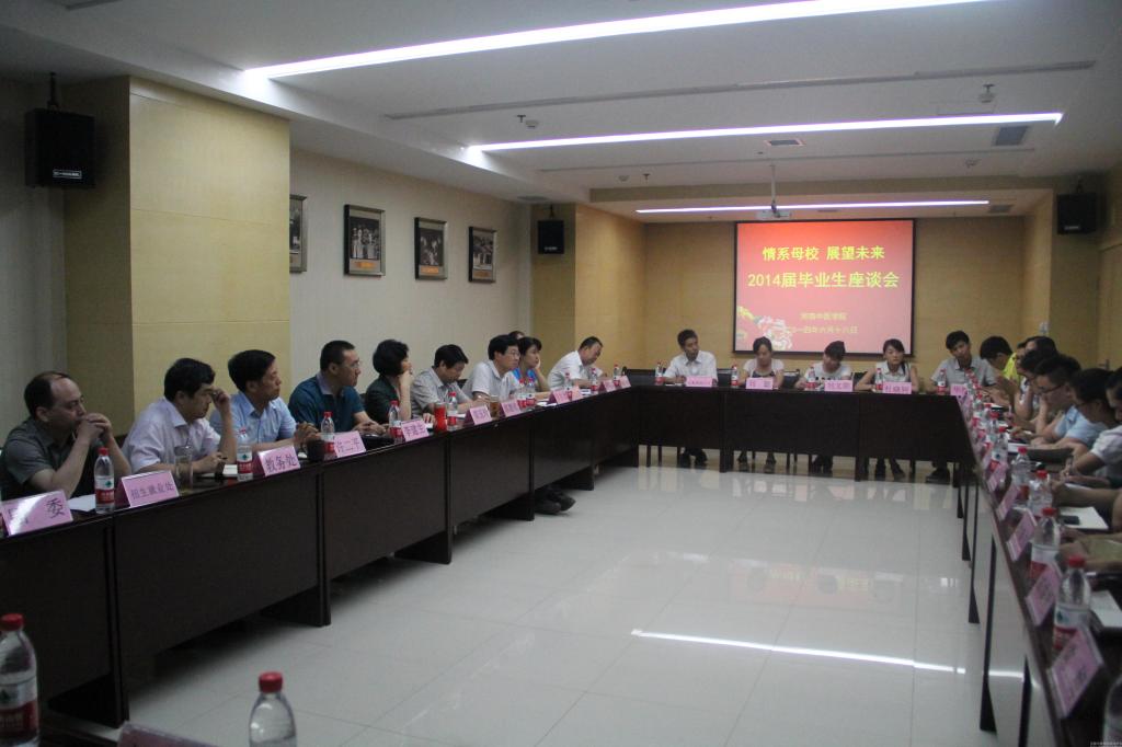 座谈会上,同学们踊跃发言,表达了对母校培养的感激之情,为母校近几年的快速发展感到骄傲和自豪,表达了不辜负母校的培养,为母校争光的信心和决心。同时,同学们结合自己的专业学习、实习和就业、动手能力培养、仲景班学生培养、科研意识和能力培养、综合素质提升等方面向学校提出了自己有见地的建议。基础医学院毕业生徐腾达说:基础医学院今年654名毕业生,40%考上了研究生,近50%的学生找到了工作,他本人已签约河南省第二人民医院,是40多名求职者中唯一被录用的,这得益于在学生校务管理助理团三年的工作锻炼经历。同时,他还反映辅导员老师对学生的影响很大,目前学校辅导员缺少,建议学校选拔优秀教师加入到辅导员队伍中。leyu·乐鱼(中国)体育官方网站首届仲景班毕业生陈天翼同学今年考取了leyu·乐鱼(中国)体育官方网站一附院儿科研究生,他说他是母校传承人才培养工程的获益者,回首大学五年最开心的事情是跟着老师学习四大经典,跟随导师在临床学习的日子,老师们高尚的医德、精湛的医术和对待医学严谨的态度深深地触动着他,使他养成了对待患者认真负责的态度。2014届研究生毕业班的张文举同学,从2006年上本科到研究生都是在leyu·乐鱼(中国)体育官方网站,经历了leyu·乐鱼(中国)体育官方网站新校区的建设与发展,他满怀深情地说:是母校培养了他,母校的培育之恩将永远铭记在心。第二临床医学院的贺志敏同学说,省中医院采用执业医师考试的模式对毕业生进行临床技能培训,样式新颖,效果好,她还提到leyu·乐鱼(中国)体育官方网站就业双选会办的很实在,帮助她们班很多同学实现了就业。药学院杨抒雨同学考取了上海中医药大学的硕博连读研究生,她认为地下室很适合同学们学习,建议学校对地下室考研自习区环境进行优化。针灸推拿学院的刘聪同学考入西安交大医学院,他建议学校增加临床实践课课时,注重医学生的动手能力的培养;要加强在外校友的联络。外语学院的荣洁同学现就职于一家星级酒店,从事外文翻译等工作。她说母校良好的学风培养了她爱学习的精神,大学生助理团和白云苹基金会工作的经历培养了她的责任心和爱心,还有公文写作、礼仪接待等方面的锻炼,这些基础素质使她在新的工作单位迅速脱颖而出。第一临床医学院的马如风同学考取了北京中医药大学的研究生,他建议学校对毕业班的学生加强就业指导。药学院10药学班的刘瑞民同学考取了沈阳药科大学的研究生,性格开朗的她给大家分享了她的考研经历。座谈会上先后有来自不同院系的16名同学发言,座谈会持续近3个小时。