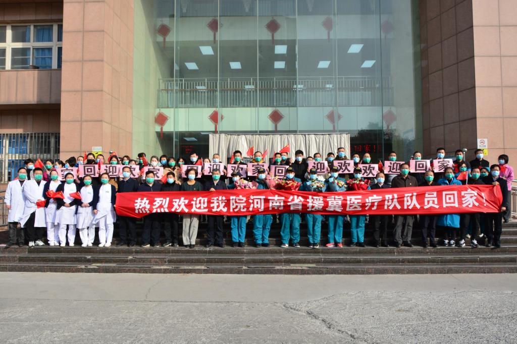 上午9:30,援冀医疗队员顺利抵达医院,早早在医院大门口迎接英雄们的职工代表手捧鲜花,拉起了“英雄凯旋,欢迎回家!”的欢迎横幅,迎接英雄凯旋归来。