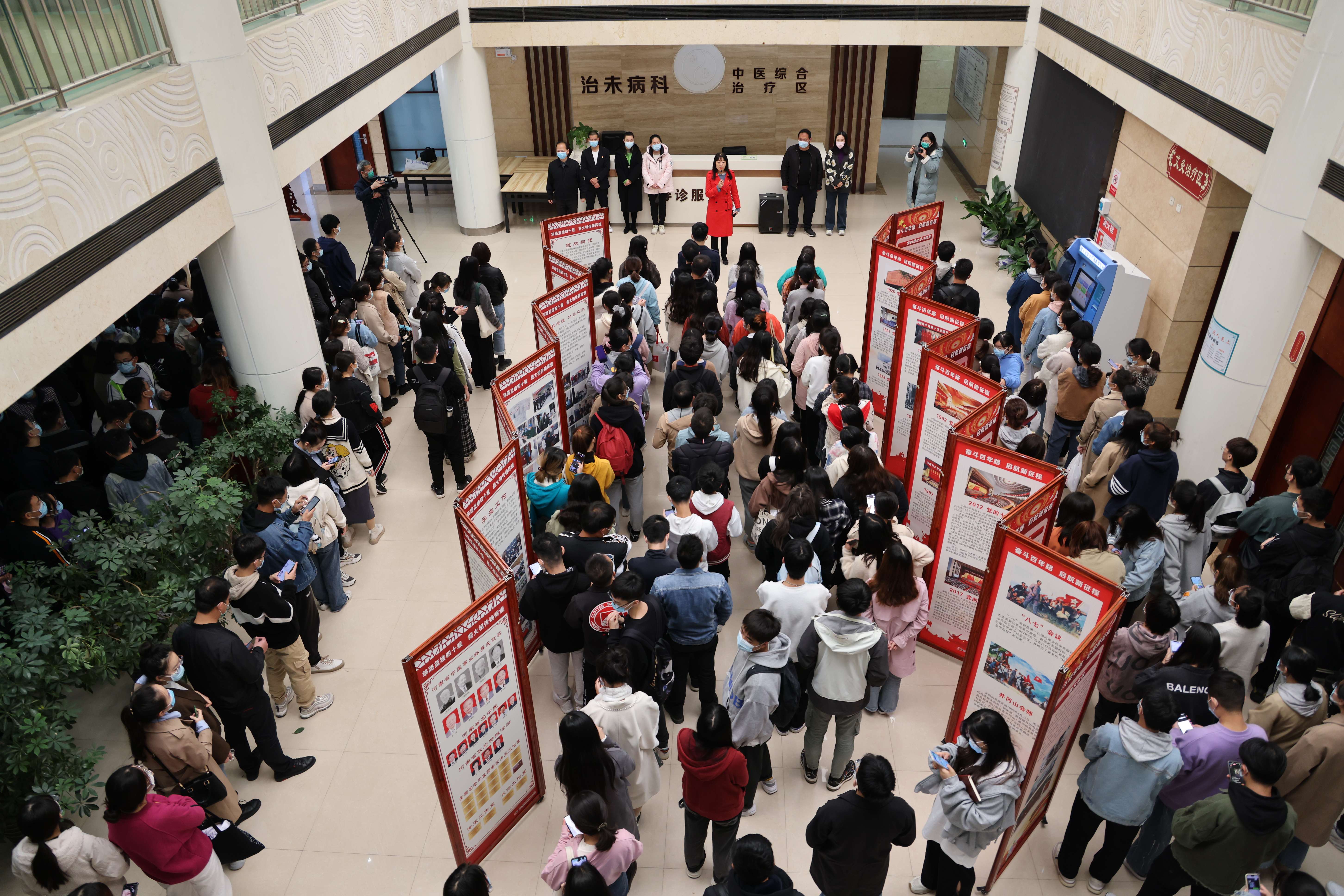 本网讯(文/图 吉云鹏)为进一步贯彻落实习近平总书记关于“大思政课”建设的重要指示精神,全面落实《关于新时代加强和改进思想政治工作的意见》,不断推进“把灾难当教材 与祖国共成长”主题教育活动,扎实做好新生入学教育,2021年10月19日,第三临床医学院组织学生参观党史、院史及抗疫抗洪精神图片展,750余名来自第三临床医学院的本专科生、研究生同学参加图片展。为进一步教育引导广大学生在百年党史中激发爱党爱国热情,在抗洪抗疫大考中培养爱院荣院意识,三临床特别安排了亲历抗洪抗疫的一线教职工担任讲解员,通过生动讲述与同学们共同回顾建党百年的光辉岁月,学院的发展历程,以及广大教职工生勠力同心战疫情、抗洪水的光荣事迹。针灸推拿学院党委副书记焦钧、第三临床医学院全体辅导员参加本次活动。