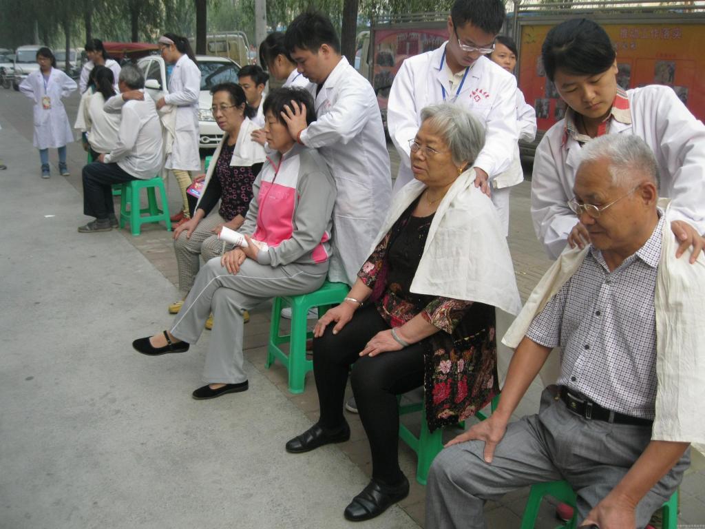 上午8时,志愿者到达宏图街社区,将血压计、按摩布、棉球、药品、桌椅等一一布置归位,为义诊活动做好充分准备。闻讯赶来的老人们在志愿者的热心指导下有序排起了长队等候诊断。医生详细询问老人们的病史,帮老人全面检查身体,为他们进行诊断,开出处方,还免费赠送老人《美食巧吃更健康》、《合理运动身体棒》等养生手册,希望他们注重养生,关注身体健康。同时,志愿者们利用所学知识认真地为老人量血压、测血糖,并依据血糖、血压的高低为他们量身定制了特定食谱,并为他们提供了leyu·乐鱼(中国)体育官方网站特色的刮痧、针灸、推拿、按摩等服务。在此期间,志愿者给他们讲述一些常用的秋季养生知识及日常健康保健方法等,还热情询问老人的日常生活情况,陪他们聊天,给他们表演节目,周到的服务、愉快的交流拉近了志愿者与社区老人的距离,义诊现场其乐融融。