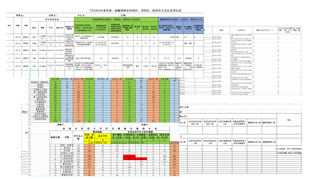 吴晓旭每日填报的各种表格