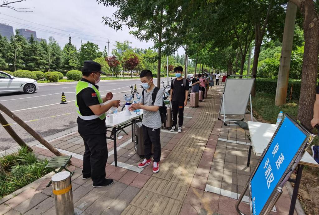 返校学生有序排队进入一附院龙子湖院区进行检测