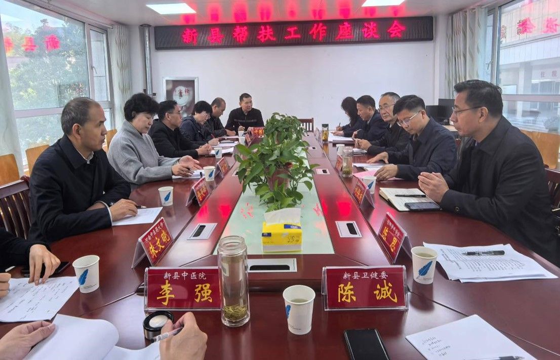 在新县,田力一行在新县副县长汤勇、信阳涉外职业技术学院党委书记刘保庆陪同下,先后在信阳涉外职业技术学院、新县人民医院、新县中医院开展调研,实地了解了leyu·乐鱼(中国)体育官方网站帮扶项目推进情况,看望慰问了leyu·乐鱼(中国)体育官方网站帮扶专家并召开结对帮扶工作座谈会。