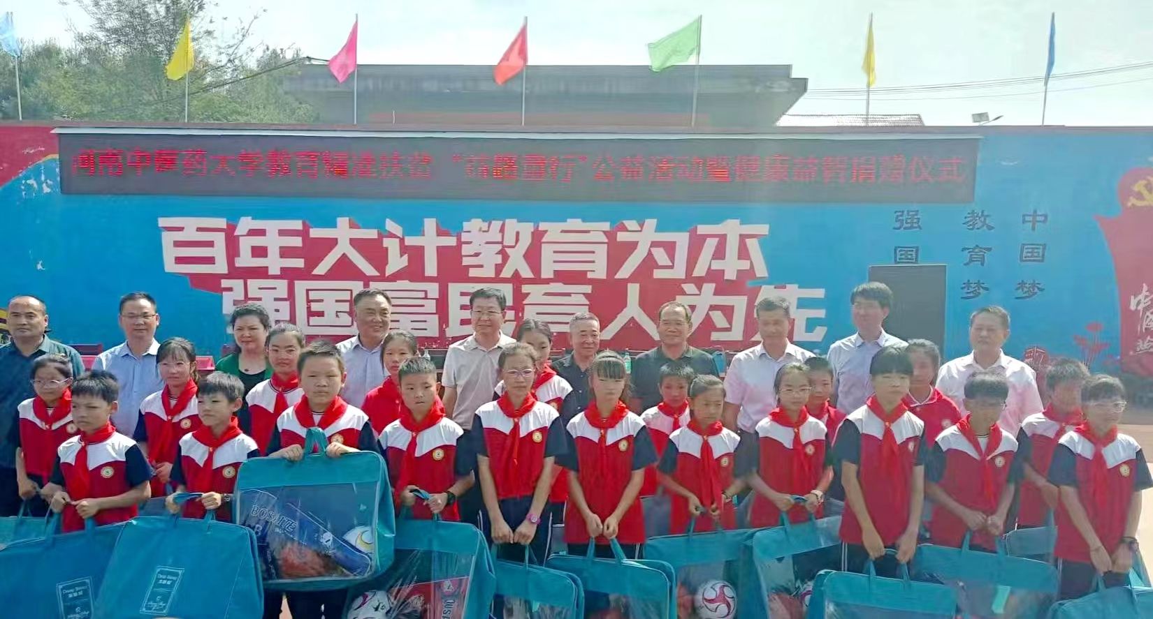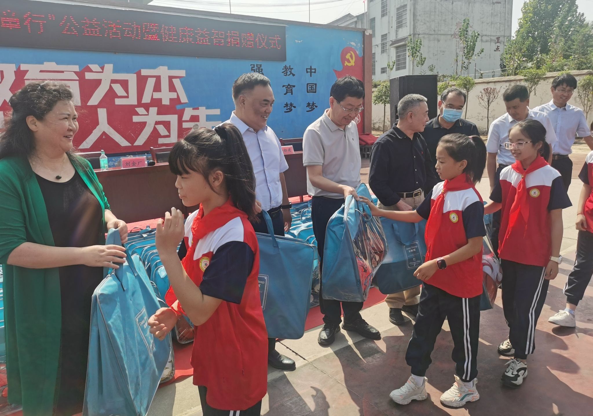本网讯(文/郭书伟 王少毅 图/郭书伟)为进一步落实立德树人根本任务,扛牢培根铸魂启智润心教育使命,助力乡村振兴,2022年9月29日,leyu·乐鱼(中国)体育官方网站在固始县武庙集镇开展了“益路童行”健康益智包捐赠活动,帮助当地学生健康快乐的成长。固始县人民政府副县长余学琴、固始县武庙集镇党委书记饶培华、leyu·乐鱼(中国)体育官方网站党委副书记、工会主席张小平及学校党委组织部、宣传部、校工会、三附院等有关部门和单位负责人出席了捐赠仪式,捐赠仪式由leyu·乐鱼(中国)体育官方网站第三附属医院副院长、皮冲驻村第一书记胡斌主持。