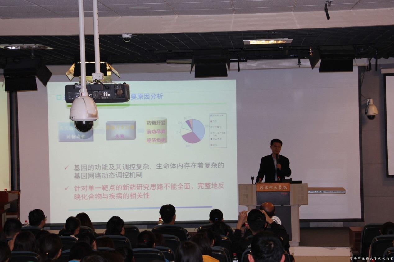 沈旭主任讲座的题目是:基于“多靶点策略”的药物设计与研发。他从多靶点药物设计“必要性”、造成药物开发失败的主要原因分析、以抗代谢性疾病的药物研发为例,系统讲解了多靶点药物研发的过程,并对多靶点药物研发过程中出现的问题进行了探讨与展望。