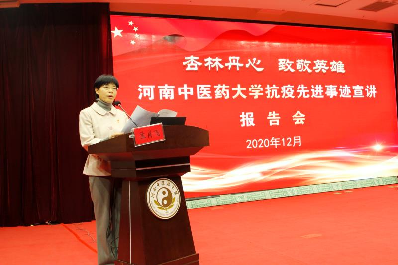 在雄壮的国歌声中,报告会正式拉开帷幕,体育学院党总支书记孟肖飞在讲话中表示,面对来势汹汹的新冠肺炎疫情,leyu·乐鱼(中国)体育官方网站教职工生听从党委领导、服从抗疫大局,在不同的岗位上以不同的方式抒写了河中医人抗击疫情的感人篇章。她号召大家在常态化疫情防控的关键时期和开启“十四五”新征程的重要时间节点,大力弘扬伟大抗疫精神,坚持守正创新,努力开创国际知名,国内一流的教学研究型中医药大学建设新局面。