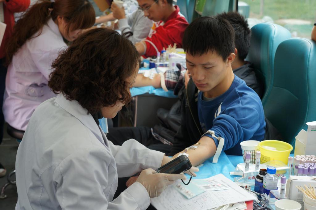 为保证献血活动的顺利进行,志愿者提前到场,组织献血同学有序排队,等待医师抽血,奉献爱心。活动开始后,志愿者积极帮助献血后的同学签字,搀扶献血同学到休息区休息并送上面包和糖水。此次献血活动历时四个小时,献血总量达79100毫升。一位献血者这样说到:“捐献自己可以再生的血液挽救不可再生的生命,这是一件非常光荣的事,我很自豪。”
