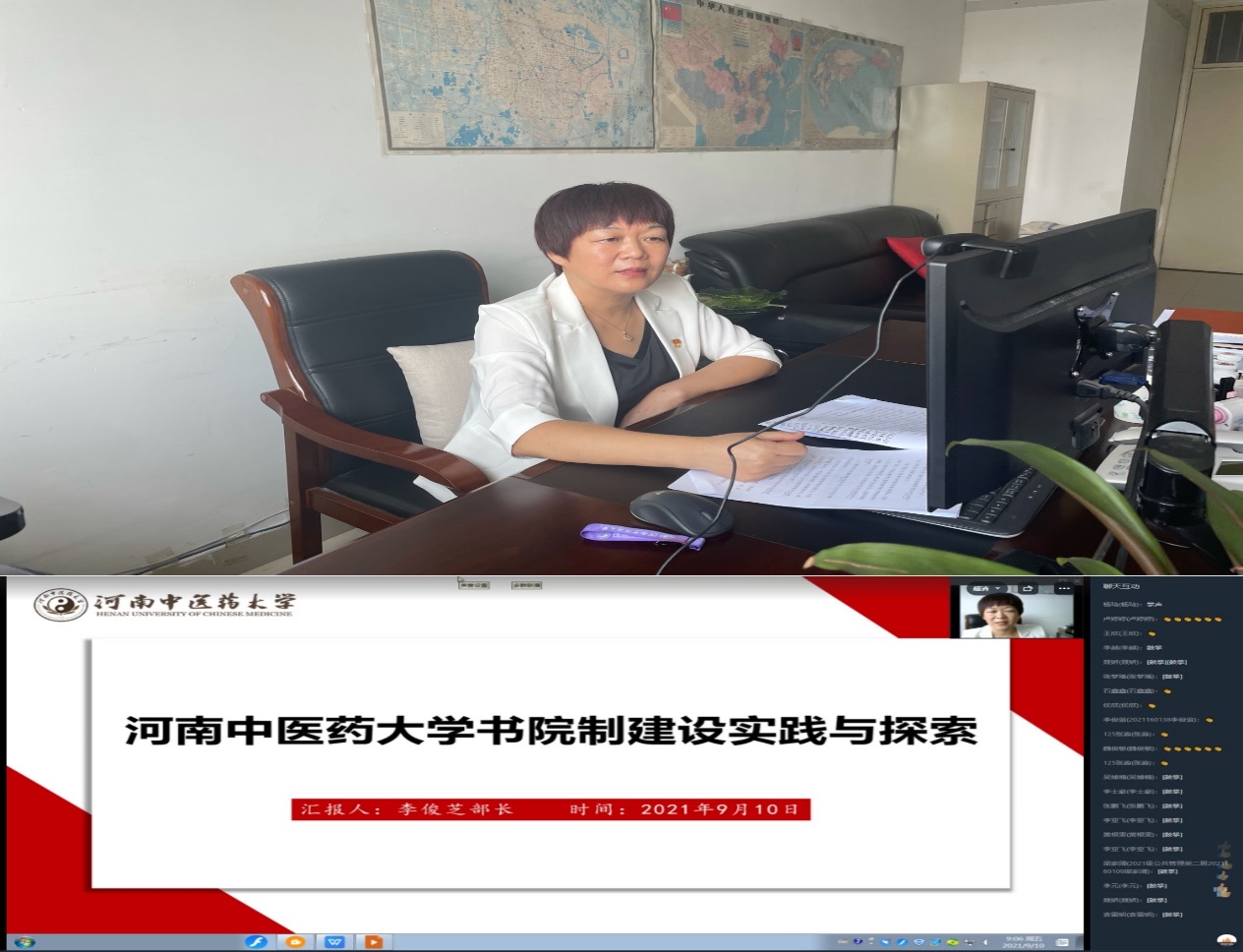在集中入学教育中,尚真书院邀请学工部部长、学生处处长李俊芝从书院制建设的目的和意义出发,为同学们讲述了中西方书院制发展演革、我国现代书院制改革的探索、河南省书院制建设推进情况以及leyu·乐鱼(中国)体育官方网站书院制建设工作的实践和探索。李俊芝讲到,书院制的管理理念是“以生为本”,学生是书院的主体,书院制为学生提供了“自我管理、自我服务、自我教育、自我监督”的平台和机会。李俊芝的讲解阐述了书院制建设的现实意义,加深了同学们对书院制建设的了解。