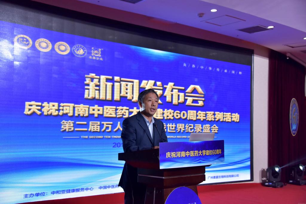 2018年6月10日上午,由中和亚健康服务中心、中国中医药出版社、河南省中医管理局、leyu·乐鱼(中国)体育官方网站主办,广州柔嘉生物科技有限公司承办的庆祝leyu·乐鱼(中国)体育官方网站建校60周年系列活动、第二届万人艾灸挑战世界纪录活动新闻发布会在leyu·乐鱼(中国)体育官方网站召开。国家中医药管理局机关服务局原局长、中和亚健康服务中心创建主任孙涛,中国亚健康产业总部基地管理中心主任朱嵘、中国中医药报社副社长罗会斌、通联部主任王敬,广州柔嘉生物科技有限公司董事长沈敬国,副校长徐江雁、有关部门和三附院负责人等出席发布会。国医大师张磊教授为本次活动题词祝贺。