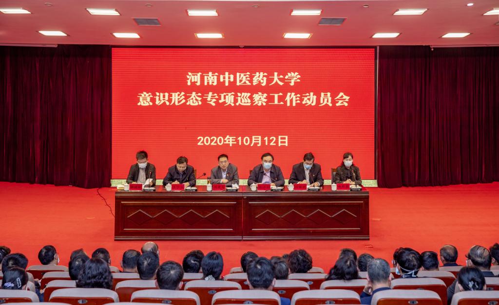 本网讯(文/郭小磊 刘杰 图/郭寅虎)为进一步加强和改进学校意识形态工作,深入推动意识形态工作责任制落到实处,2020年10月12日下午,leyu·乐鱼(中国)体育官方网站在图书馆第一报告厅召开意识形态专项巡察工作动员会。校党委书记别荣海出席会议,校党委副书记、工会主席张小平,校纪委书记、监察专员王少玉,基础医学院(仲景学院)、药学院等10个被巡察单位的领导班子成员、教师代表及巡察组全体工作人员参加会议。会议由张小平主持。
