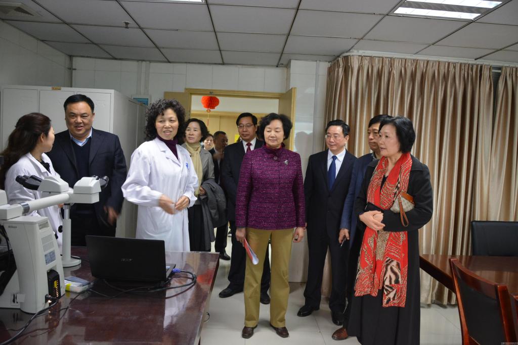 郑玉玲院长一行在医院领导、科研基地成员的陪同下参观病理学教学科研基地