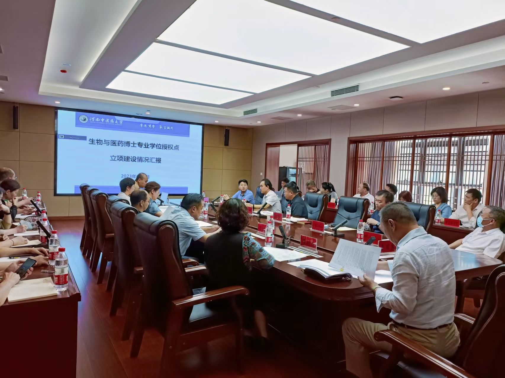 会上,蒋时红传达了河南省教育厅、河南省发展和改革委员会、河南省财政厅《关于公布河南省博士硕士学位授予单位和学位授权点立项建设名单的通知》精神,对学位点建设提出阶段性目标要求。中西医结合、生物与医药、医学技术、公共管理、临床医学、公共卫生六个学位点负责人针对学位点基本情况、建设成效、存在问题和下一步工作规划进行现场汇报。相关职能部门负责人就学位点建设相关内容进行指导。与会人员针对后续师资队伍建设、学科方向设置、指标体系等内容进行了研讨。