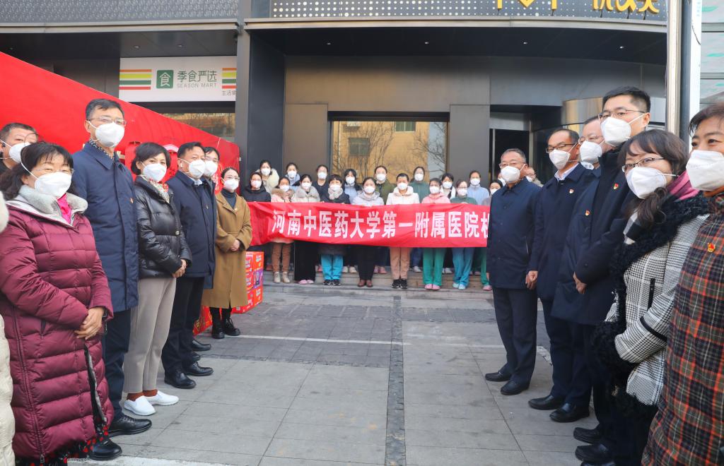 本网讯(文/李海松 图/李瑞)金牛驮疠辞旧岁,寅虎抱福迎新春。2022年1月30日,临近农历除夕,正是万家团圆、迎春纳福的美好时刻。一附院党委书记翟剑波,院党委副书记、院长朱明军等医院领导带领相关部门负责人到新郑机场实地看望慰问一附院派驻机场第八批新冠肺炎疫情排查工作队,并为派驻机场工作队、派驻港区医院及郑大南院区医疗救治队员送去饱含温暖关爱的新年礼包。