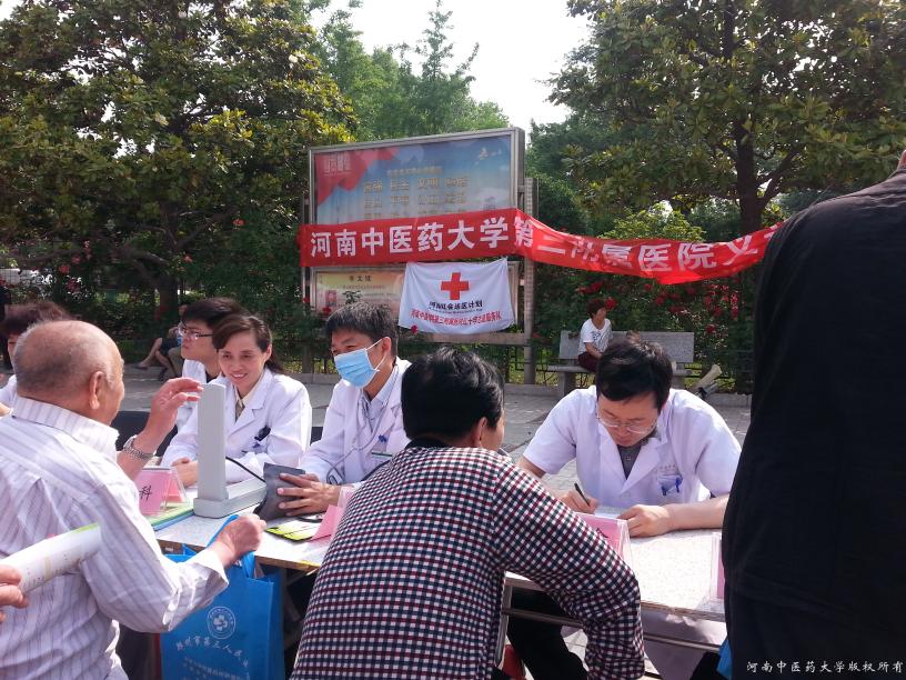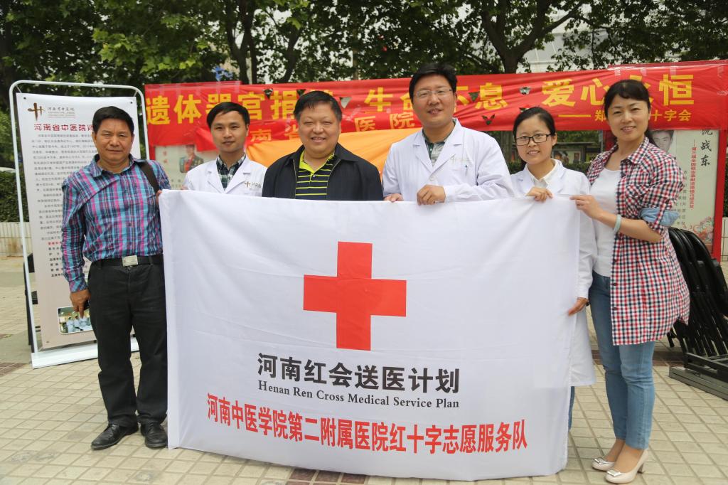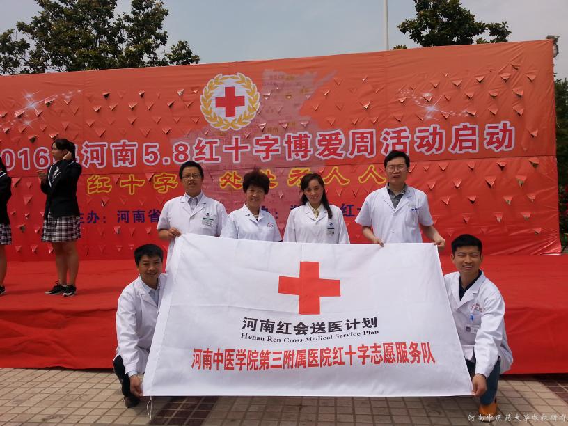 为纪念第69个世界红十字日,进一步弘扬“人道、博爱、奉献”的红十字精神,2016年5月6日上午,学校工会组织二附院、三附院志愿者来到绿城广场,参加了河南省“5.8红十字博爱周”义诊服务活动。