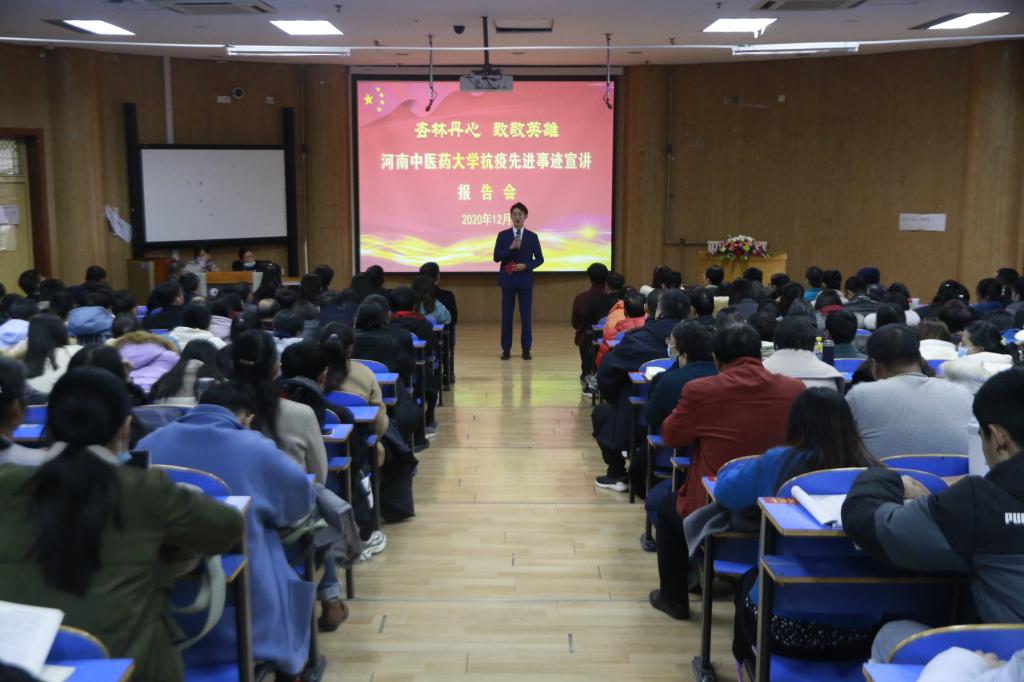 本网讯(文/韩雪 图/李沂隆)为弘扬伟大抗疫精神,激励使命担当,2020年12月8日,leyu·乐鱼(中国)体育官方网站“杏林丹心 致敬英雄”抗疫先进事迹宣讲报告会在A5多功能报告厅举行。校党委宣传部副部长蔡信强,基础医学院全体领导班子成员及学院师生代表350余人参加了报告会。
