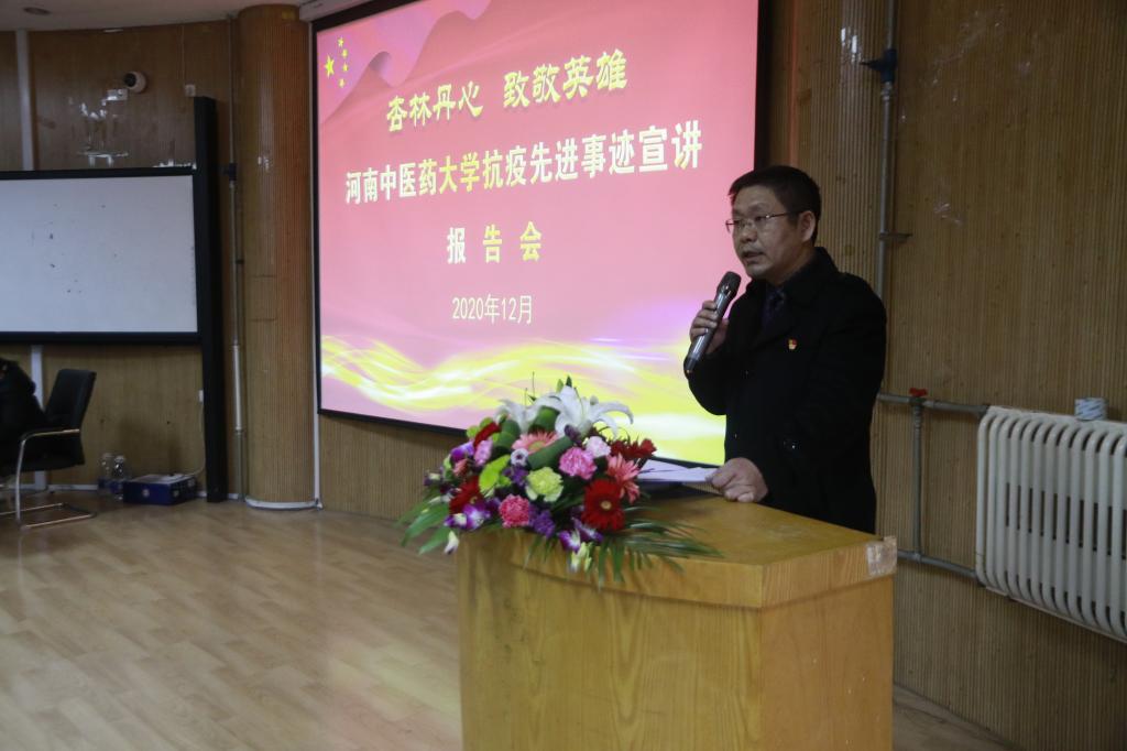 会议在雄壮的国歌声中拉开序幕。基础医学院党委书记禄保平在致辞中向leyu·乐鱼(中国)体育官方网站主动请缨,不畏艰险,挺身而出的抗疫英雄们致以崇高的敬意,号召广大师生以先进为榜样,传承中华优秀传统文化和中医药精华,为学校发展建设做出新的更大贡献。