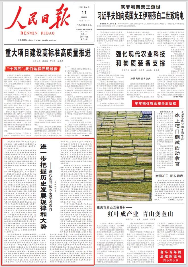 江山就是人民,人民就是江山。2月20日,习近平总书记在党史学习教育动员大会上发表重要讲话指出,赢得人民信任,得到人民支持,党就能够克服任何困难,就能够无往而不胜。近日,人民日报推出系列评论员文章,号召全党全社会通过扎实开展党史学习教育,进一步感悟思想伟力、进一步把握历史发展规律和大势、进一步深化对党的性质宗旨的认识、进一步总结党的历史经验、进一步发扬革命精神、进一步增强党的团结和集中统一。
