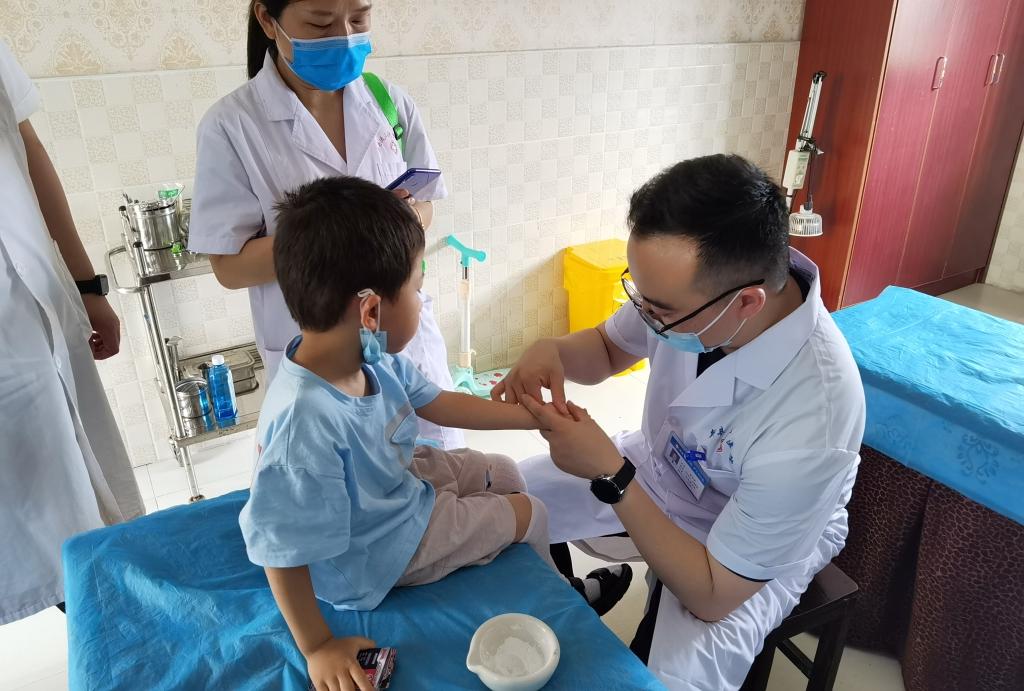 帮扶专家谢雨辰在新县中医院为患者进行治疗