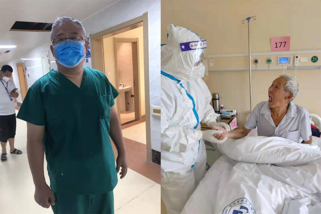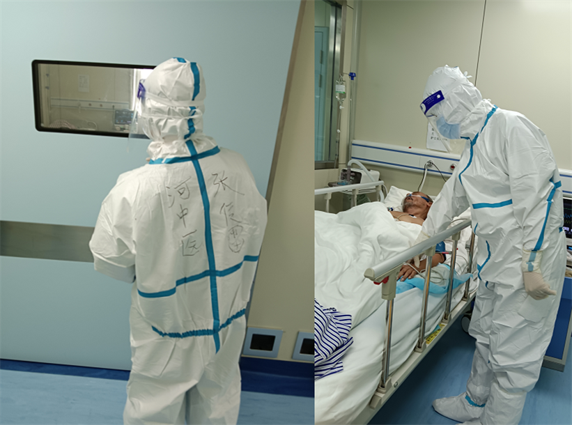 2021年8月1日,一附院余学庆主任被河南省卫健委紧急抽调前往郑州市第一人民医院港区医院开展新冠病例集中收治工作。余学庆充分发挥自己的中医药专业优势,在短短半天时间内就完成了所有病患一人一方的诊疗任务。每到脱掉防护服下班,身上的洗手衣轻轻一拧,就能流出大滩的汗水,余学庆用实际行动践行着关爱生命救死扶伤的誓言。