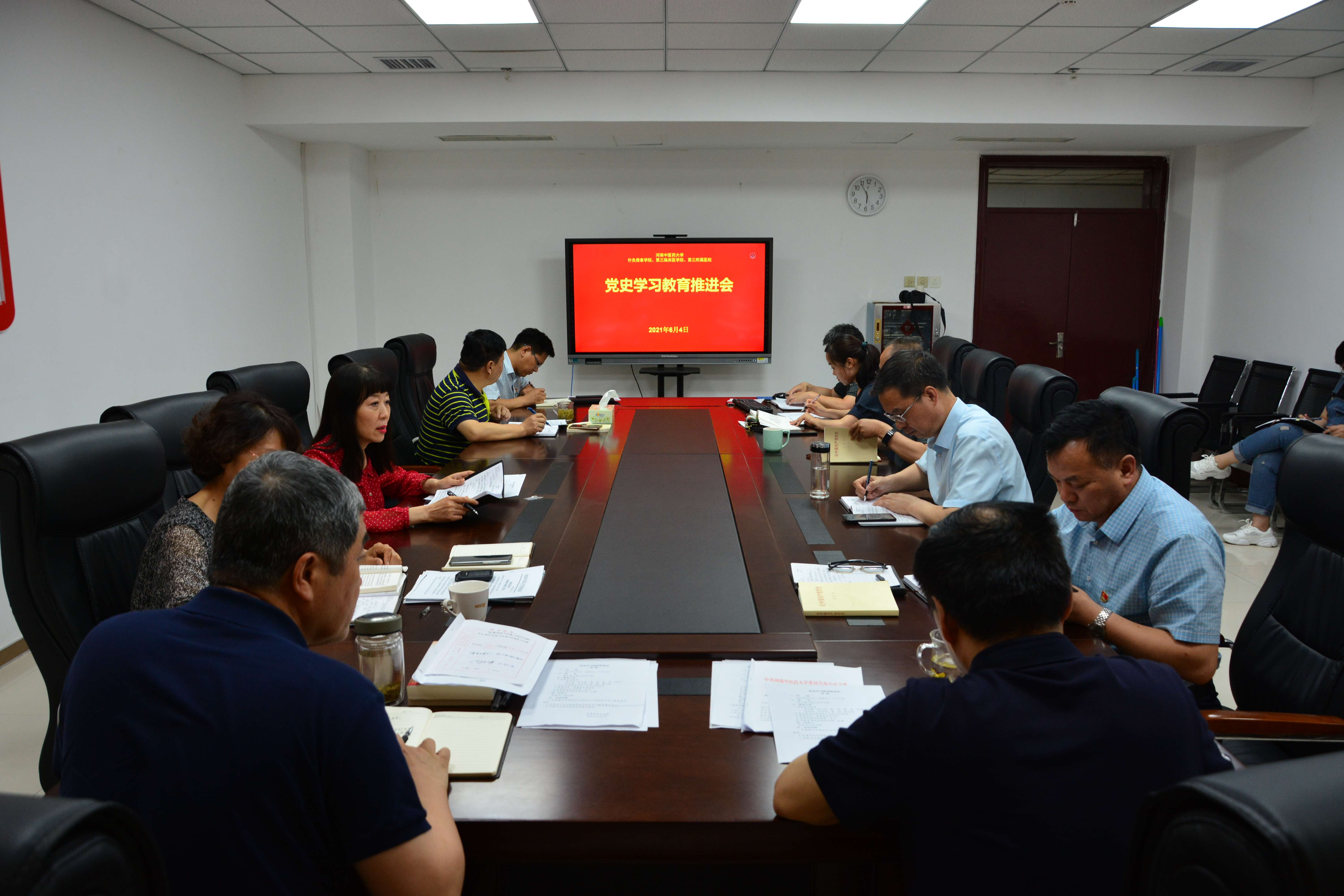 本网讯(文/图 潘向昆)为全面贯彻落实学校第二次党史学习教育推进会精神,持续推进党史学习教育走深走实。2021年6月4日下午,三附院召开第二次党史学习教育推进会,医院全体领导班子成员和各党总支、直属党支部书记参加会议。会议由党委书记周运峰主持。