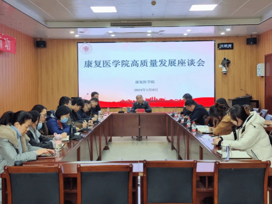 本网讯(文/图 闫晓)为了进一步全面推进康复医学院高质量发展,做好2024年工作总体布局。2024年1月9日,康复医学院邀请校党委委员、副校长苗明三参加学院高质量发展座谈会,部署谋划2024年学院以高质量党建引领高质量发展。学院党委书记张运克、院长冯晓东等院领导和全体教师参加座谈会,张运克主持。