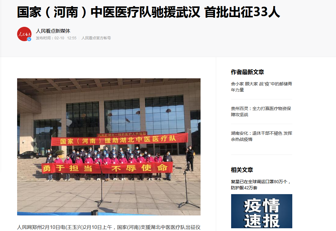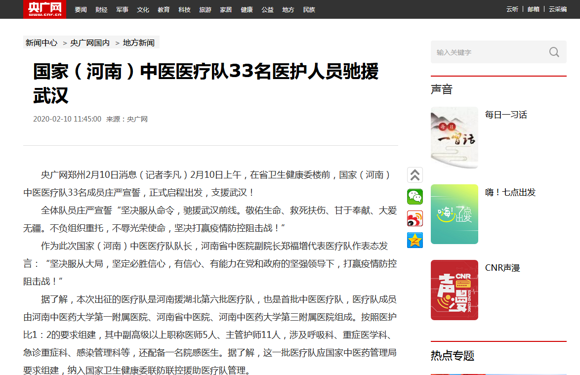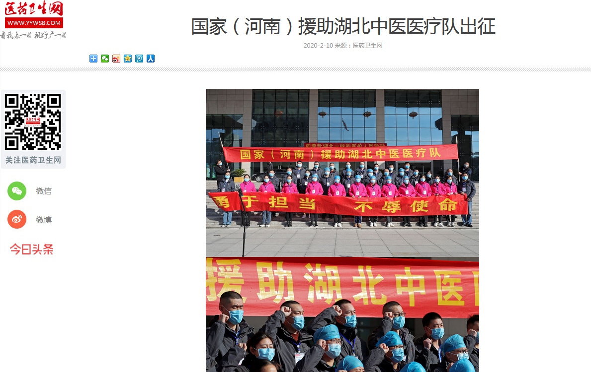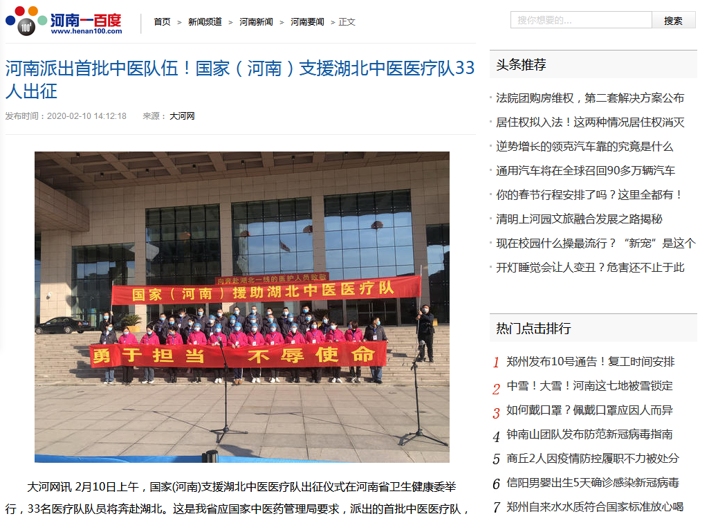 编者按:2020年2月10日,学习强国、央广网、全国党媒信息公开平台、河南日报客户端、河南省中医管理局官微、河南日报报业集团、河南省卫生健康委官方微信、大河网、腾讯网、人民看点新媒体、医药卫生网、河南广播电视台·健康大河南官方微信、河南广播电视台都市频道官方微信、河南广播电视台都市频道官方微信、河南一百度等媒体对leyu·乐鱼(中国)体育官方网站援助武汉国家(河南)中医医疗队启程进行报道。现将河南日报客户端《河南首支中医医疗队奔赴武汉! 这是我省派出的第6批支援湖北医疗队》全文刊发如下: