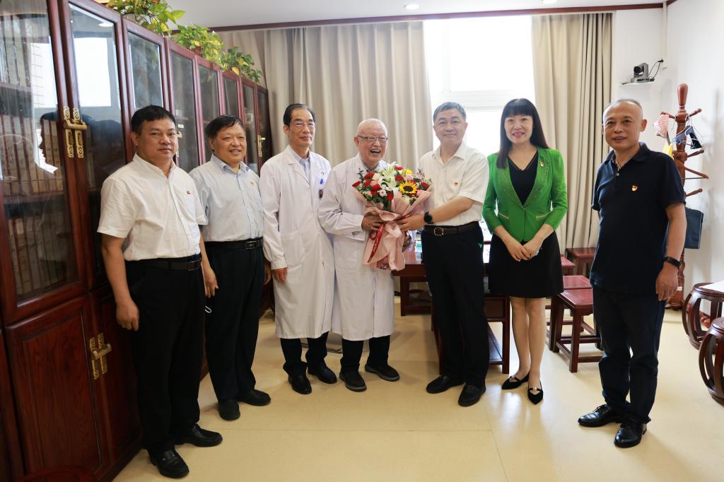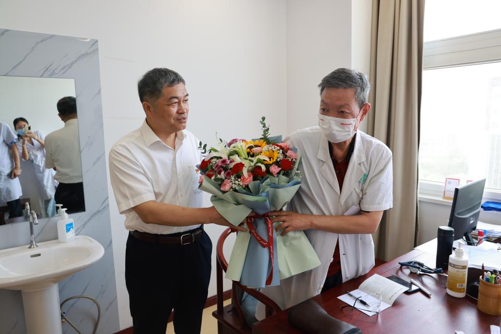 本网讯(文图/胡兴旺)为充分体现党组织对长期奋战在临床一线、抗疫阵地和乡村振兴前线的老党员、青年党员的关怀和爱护,深化开展“能力作风建设年”活动,2022年7月1日上午,三附院院长张大伟,院党委副书记焦钧,院纪委书记刘会勋,副院长王志超、高翔,工会主席蔡庆春带领党院办等相关科室人员看望慰问了“七一”建党节坚守一线的党员代表。