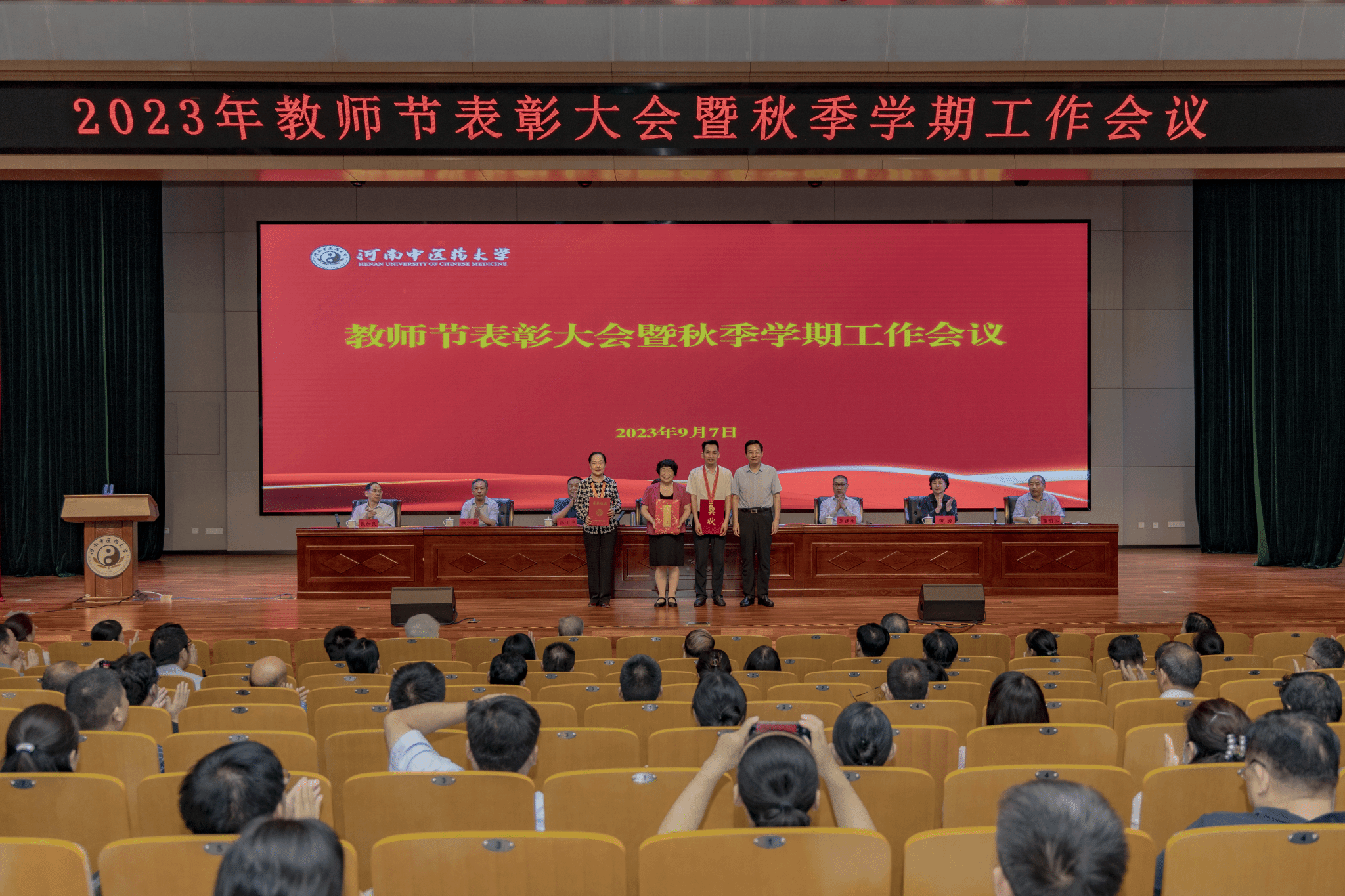 校长王耀献为2023“最美医生”、国医大师丁樱老师,“全国五一劳动奖章”获得者张勤生老师,“全国三八红旗手”获得者李鲜老师颁奖。校领导分别为获得省部级以上先进集体代表,教学竞赛、教学质量工程项目、科研成果奖励的先进个人代表以及获得省部级以上荣誉、人才称号的先进个人代表颁奖。会场响起热烈的掌声,与会人员向获奖集体、个人送上最崇高的敬意和真挚的祝福。