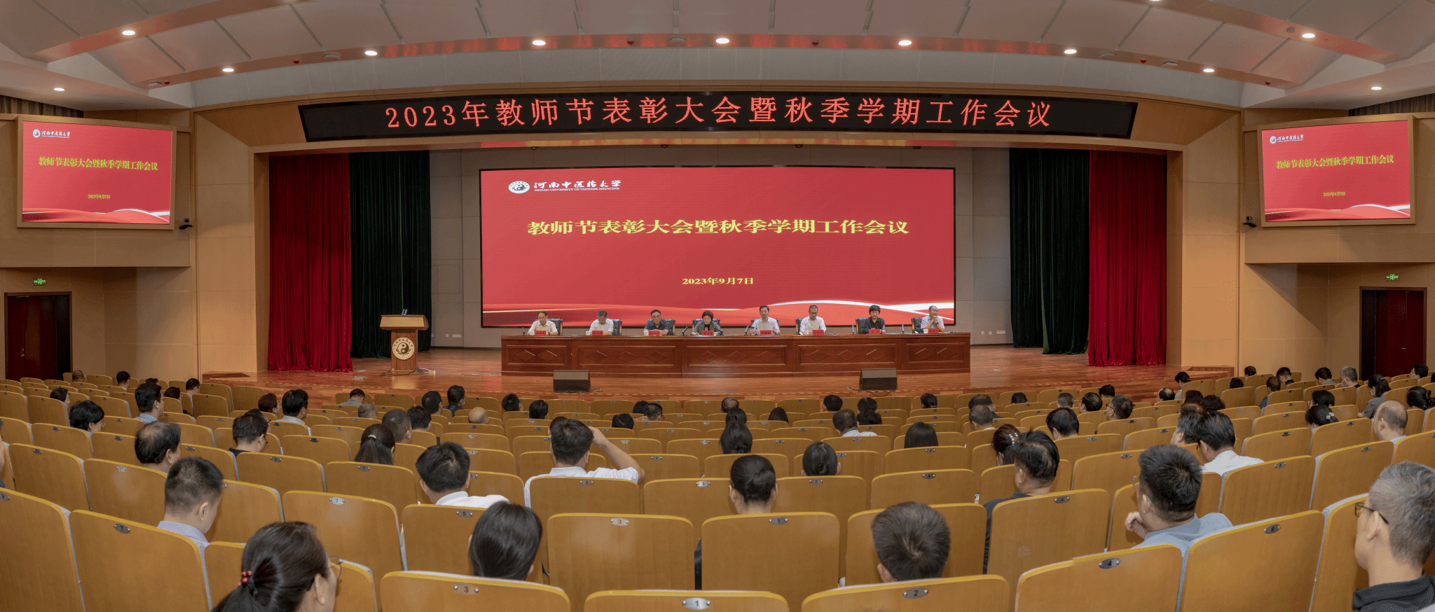 本网讯(文/贾姝 图/郭寅虎 吴晋一)在第39个教师节即将到来之际,学校2023年教师节表彰大会暨新学期工作会议在俊学综合实验楼会议厅B101隆重举行。在郑校领导、全体中层干部、受表彰的先进集体和先进个人代表、教师代表、学生代表近300人参加会议。校党委书记李小芳主持会议。