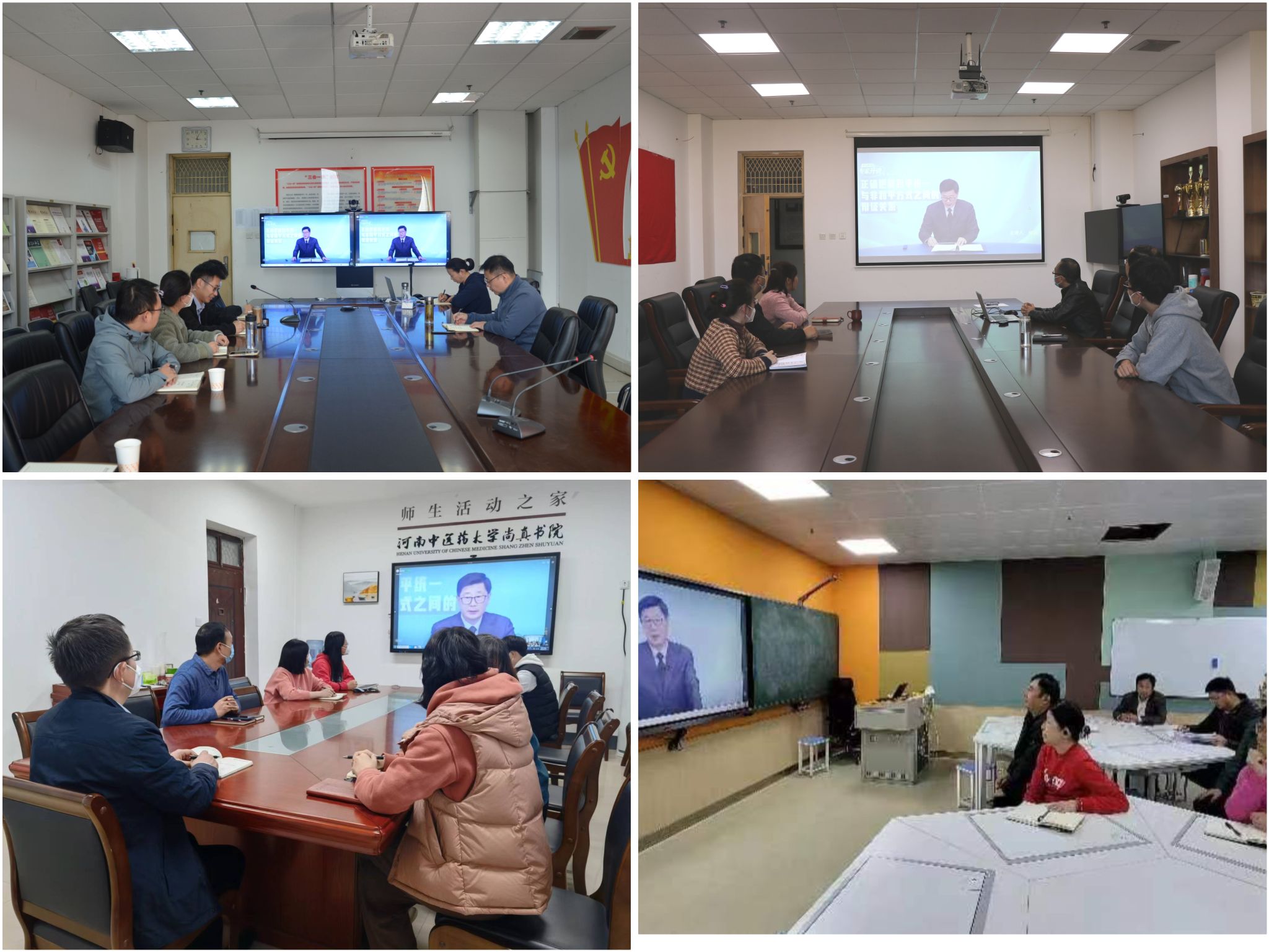 本网讯(文/王赞 图/各基层党组织)解决台湾问题、实现祖国完全统一,是中华民族根本利益所在,是全体中华儿女的共同心愿,是中国共产党矢志不渝的历史任务。为使广大师生更加全面的了解中央对台大政方针、准确的把握当前两岸关系形势,2022年11月17日下午15:00,leyu·乐鱼(中国)体育官方网站各基层党组织以党委理论学习中心组学习、党支部活动等形式,组织师生观看“豫教思语”涉台教育“专家开讲”系列网络直播。