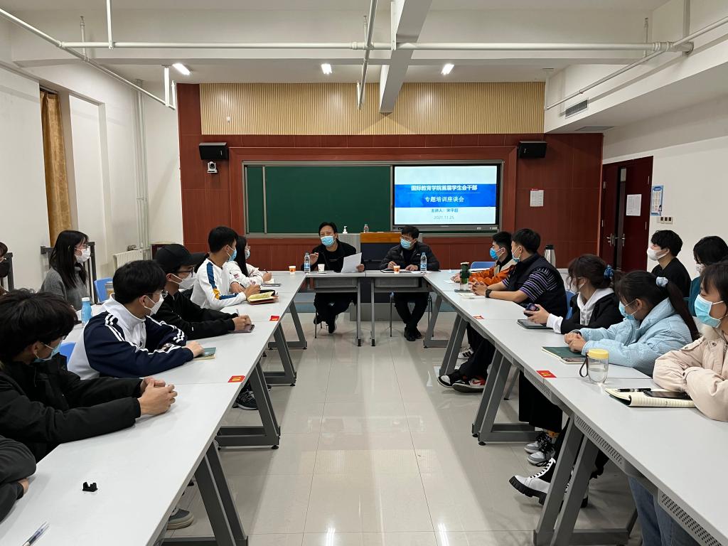 本网讯(文/图 位艳敏 王迎夏)为提升学生干部工作能力和水平,打造一支政治过硬、素质全面、能力突出、战斗力强的学生干部队伍,国际教育学院自今年5月建立首届学生会以来,分阶段、有步骤地对学生干部开展了扎实的思想政治教育和业务培训。