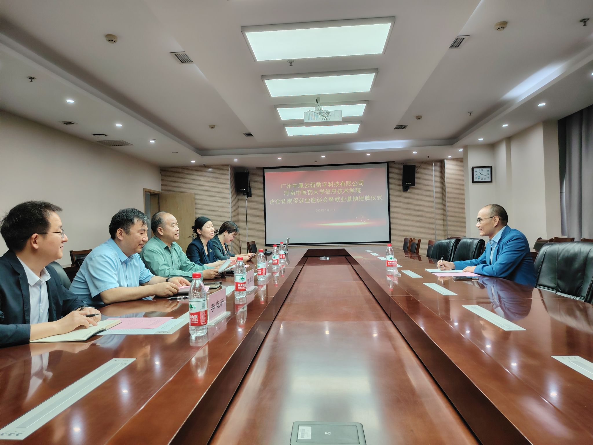 本网讯(文/宋学坤 图/任靖娟)为贯彻落实访企拓岗促就业相关文件精神,进一步深化校企合作,促进人才高质量培养,2024年5月10日,广州中康云瓴数字科技有限公司总经理、中康云瓴中药产业大数据中心总经理、首席分析师贾海彬莅临leyu·乐鱼(中国)体育官方网站参加访企拓岗促就业座谈会暨就业基地授牌仪式。校党委委员、副校长苗明三,信息技术学院党委书记马赟、院长许成刚、副院长王晓燕,尚真书院党委副书记、副院长李志轩及有关科室人员参加座谈和授牌仪式。座谈会由马赟主持。