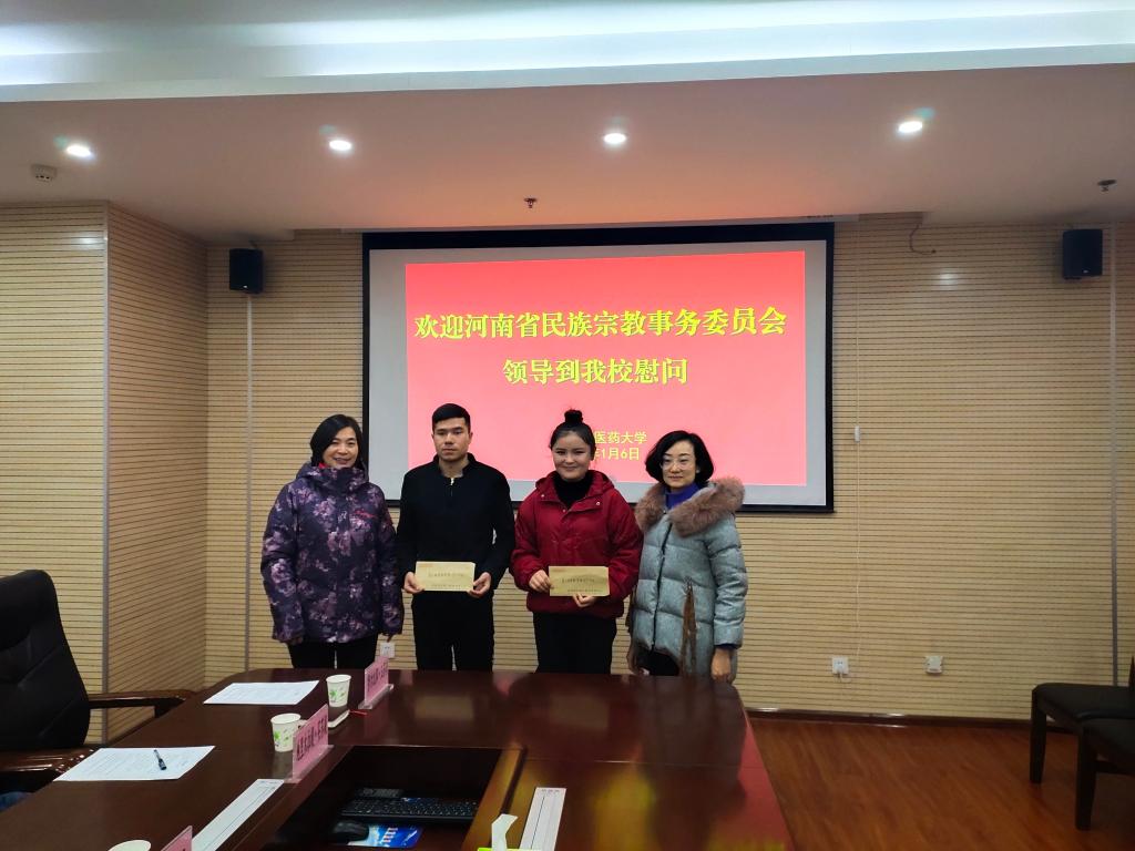本网讯(文图/努尔比耶·玉苏普)2020年1月6日下午,河南省民族宗教事务委员会涉疆办二级调研员薛鹭、四级调研员赵洋一行莅临leyu·乐鱼(中国)体育官方网站,慰问新疆籍少数民族贫困学生。