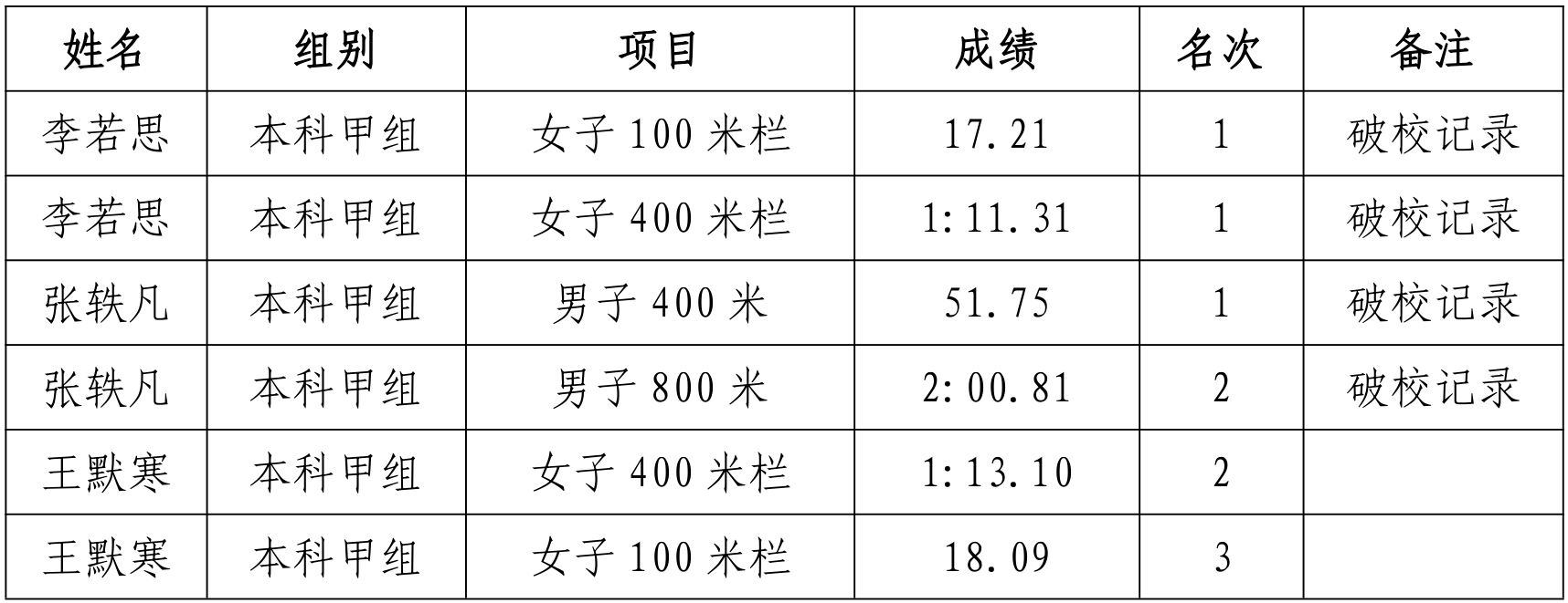经过5天的激烈角逐,leyu·乐鱼(中国)体育官方网站7名运动员与来自全省120所高校代表团的1893名运动员同场竞技,最终斩获3枚金牌、2枚银牌、1枚铜牌,获女子团体第七名,团体总分第九名的好成绩,康峰被授予“优秀教练员”称号,张轶凡、王珂欣被评为“体育道德风尚运动员”,leyu·乐鱼(中国)体育官方网站代表队获得“体育道德风尚奖”。值得一提的是,leyu·乐鱼(中国)体育官方网站代表队在本次运动会4个项目的成绩同时也打破了leyu·乐鱼(中国)体育官方网站该项目的保持记录,其中张轶凡同学男子800米的成绩同时打破了leyu·乐鱼(中国)体育官方网站保持32年之久的校记录。