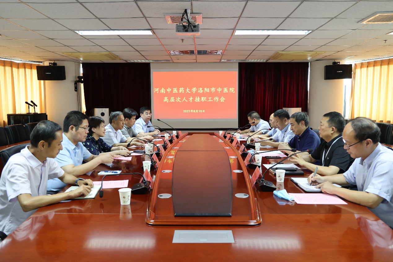 本网讯(文图/牛乐)为进一步深化学校与医院高层次人才交流,强化leyu·乐鱼(中国)体育官方网站人才干部队伍建设,加强对非直属附属医院支持力度,提升医院教学和科研能力,2022年8月10日下午,校党委副书记李小芳,校党委委员、副校长徐江雁带领校党委组织部、教务处、发展规划处等相关部门负责人和有关人员赴洛阳市中医院开展高层次人才挂职工作。