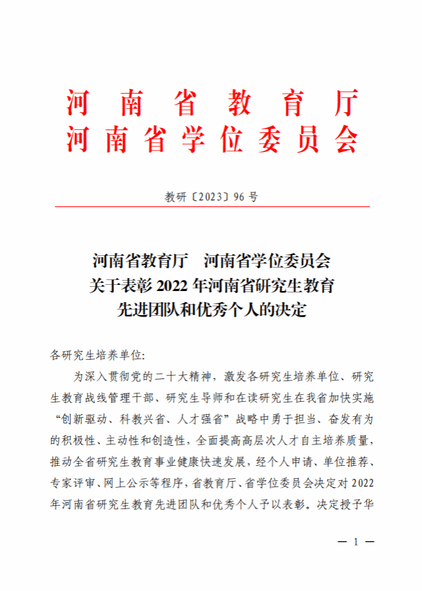 本次表彰是河南省在“十四五”期间针对研究生教育工作首次组织的评优评先活动,旨在激发各研究生培养单位、研究生教育战线管理干部、研究生导师投身研究生教育改革热情,积极推动研究生教育高质量、内涵式发展。同时对激发在读研究生创新意识,提高创新和实践能力起到积极推动作用。