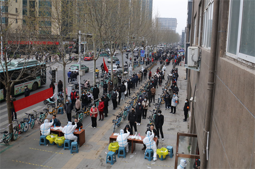 本网讯(文/戴秀娟 图/李攀)2022年3月20日,郑州市发布47号通告,决定在金水等8个区域进行全员核酸采检工作。为响应号召,3月21日上午七时,二附院集结315人核酸检测队出征,奔赴金水区和惠济区开展全员核酸采集工作。