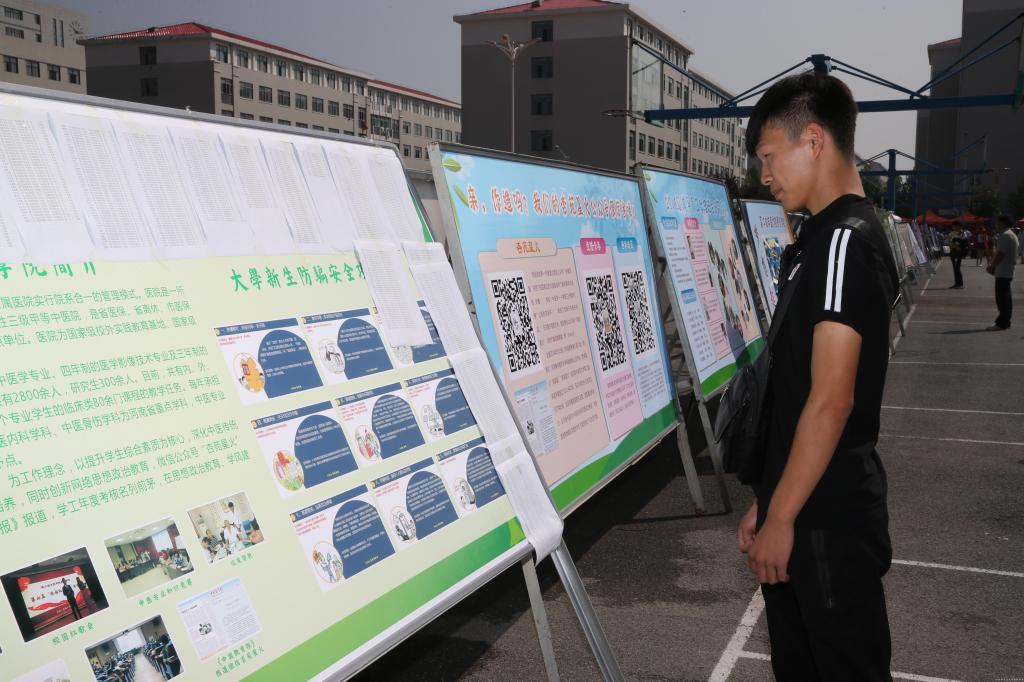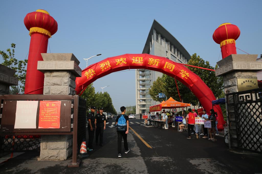 在火车站、地铁1号线终点站(市体育中心站)、高铁站,学校均设有醒目的接待引导服务站,保证新生一出站就能快速找到师生志愿者,尽快登上公交摆渡车,顺利到校报到。校园内,32条迎风鼓动的迎新条幅格外醒目,它们分布在东西南北四个门口等新生流动量较大的地方,“今朝莘莘学子以梦为马,竞知笃行展医学雄风;明日中医桃李意气风发,大展宏图耀岐黄风采”等内容激荡着每个年轻学子的心。众多的来校车辆在保卫处工作人员的细心指挥下,停放在井然有序。坐落在图书馆的河南中医药博物馆内人流不断,不少已经办理完报道手续的新生和家长在学生讲解员的带领下,全方位、多角度地了解校史、校情和灿烂厚重的中原中医药文化,参观博物馆已成为入学教育的一部分。