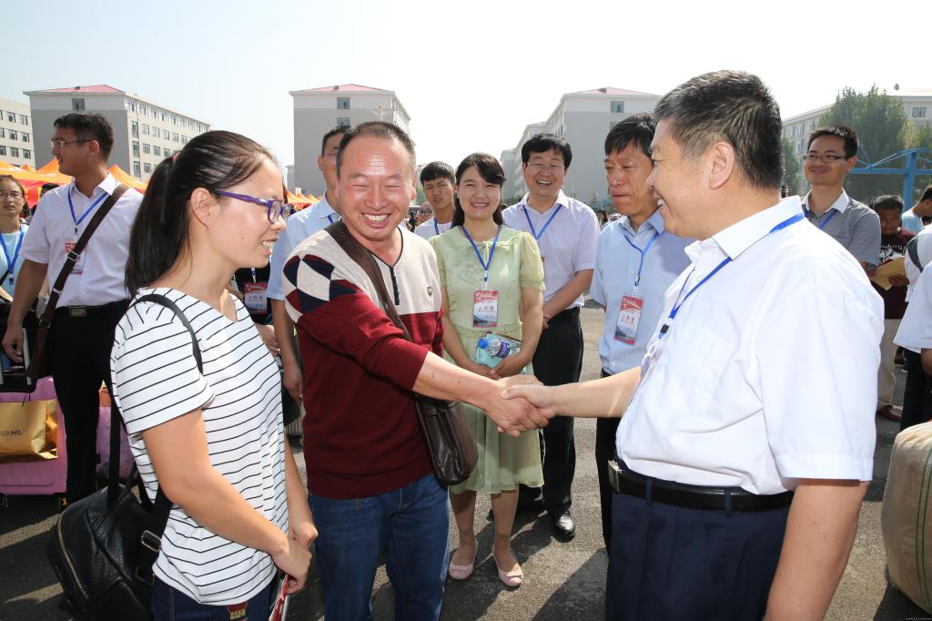 9:30,校领导孙建中、许二平、张丽霞、郭德欣、李建生、张小平、徐江雁、田力、许东升、张加民深入新生报到主会场——西操场,了解报到情况,现场指导新生入学各项工作,慰问参与迎新工作的师生和志愿者,并看望新生和家长。