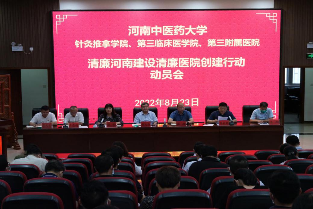 本网讯(文/图 卫凤洁)为认真贯彻落实河南省卫生健康委员会、河南省医疗保障局有关清廉河南建设清廉医院创建行动要求,努力打造党风清正、院风清朗、医风清新、行风清明的清廉医院,2022年8月23日下午,三附院在学术交流中心召开了清廉河南建设清廉医院创建行动动员会。院党政领导班子成员、党支部书记、全体科主任参加了会议。会议由党委副书记焦钧主持。