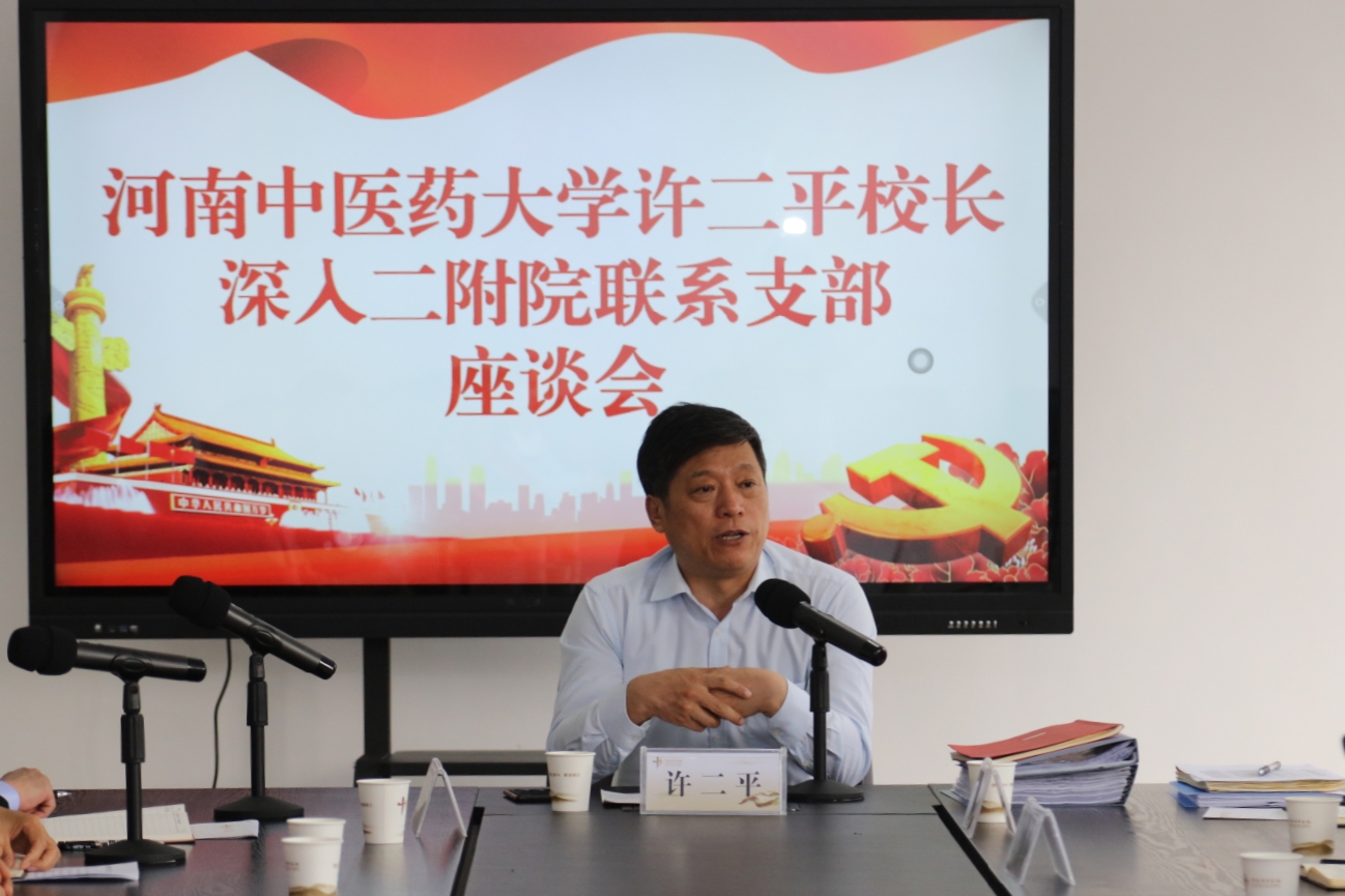 在党课和督导检查后,许二平还与所联系的两个支部进行了交流座谈。他认真听取了两位支部书记的汇报,并与现场的师生党员和入党积极分子亲切交谈,了详细解他们的学习、工作、生活情况,并对各支部的工作予以了肯定,对今后工作提出了意见和建议。许二平希望大家能够充分发挥党员的先锋模范作用,带动更多师生立足岗位,乐于奉献,不断增强政治素质和专业能力,为学校和医院发展多做贡献。