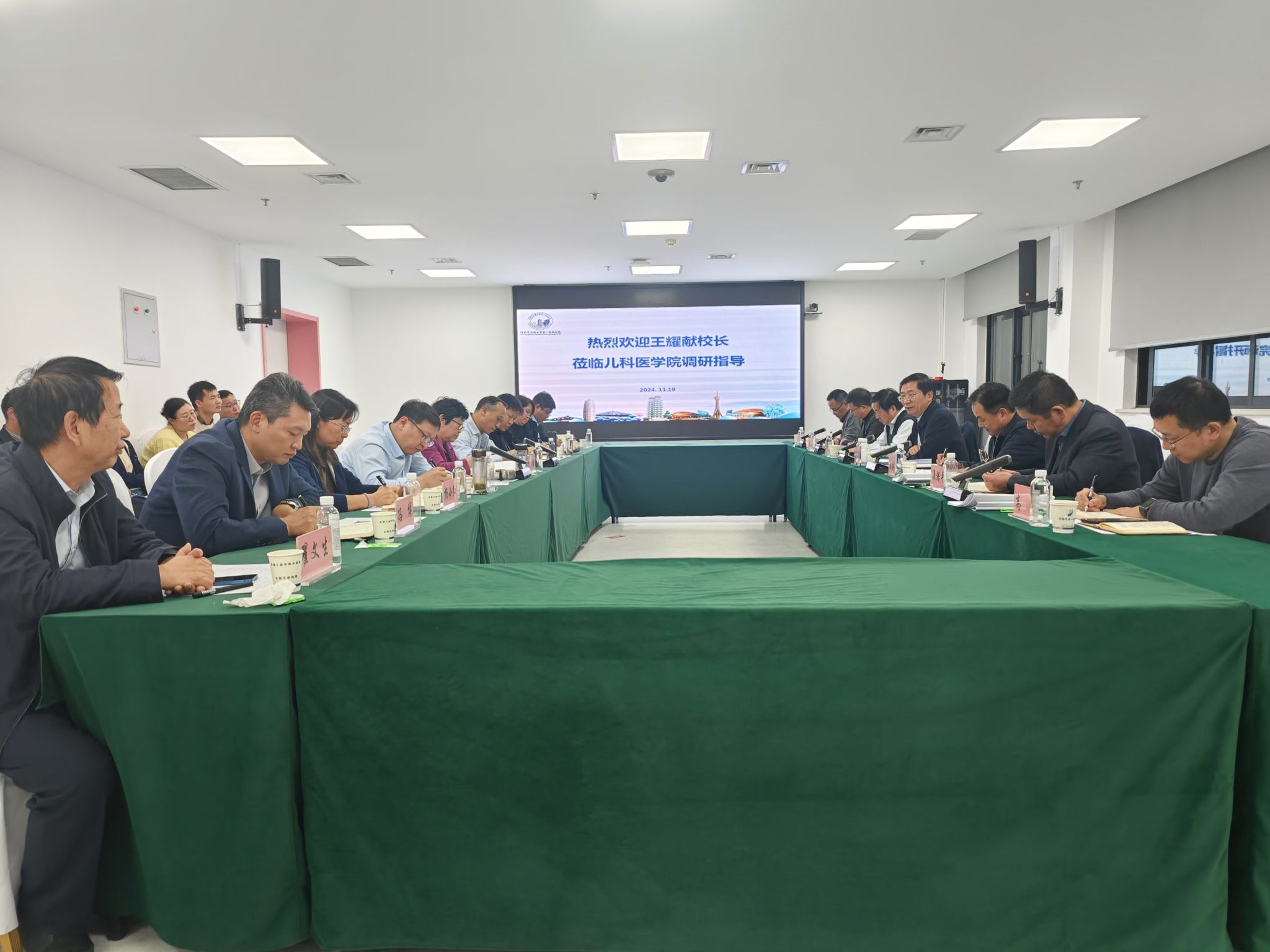 本网讯(文/雷亚星 图/张静)2024年11月19日,校长王耀献带领学校办公室、研究生院、教务部、教师工作部、科学技术处、学工部等部门负责人到儿科医学院调研指导。第一附属医院部分班子成员、儿科医学院班子全体成员及学院有关科室负责人参加调研座谈会。会议由第一附属医院、儿科医学院党委书记任献青主持。